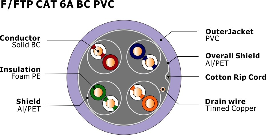 | কন্ডাক্টরের সংখ্যা: | 4 জোড়া | টাইপ: | F/FTP cat6a |